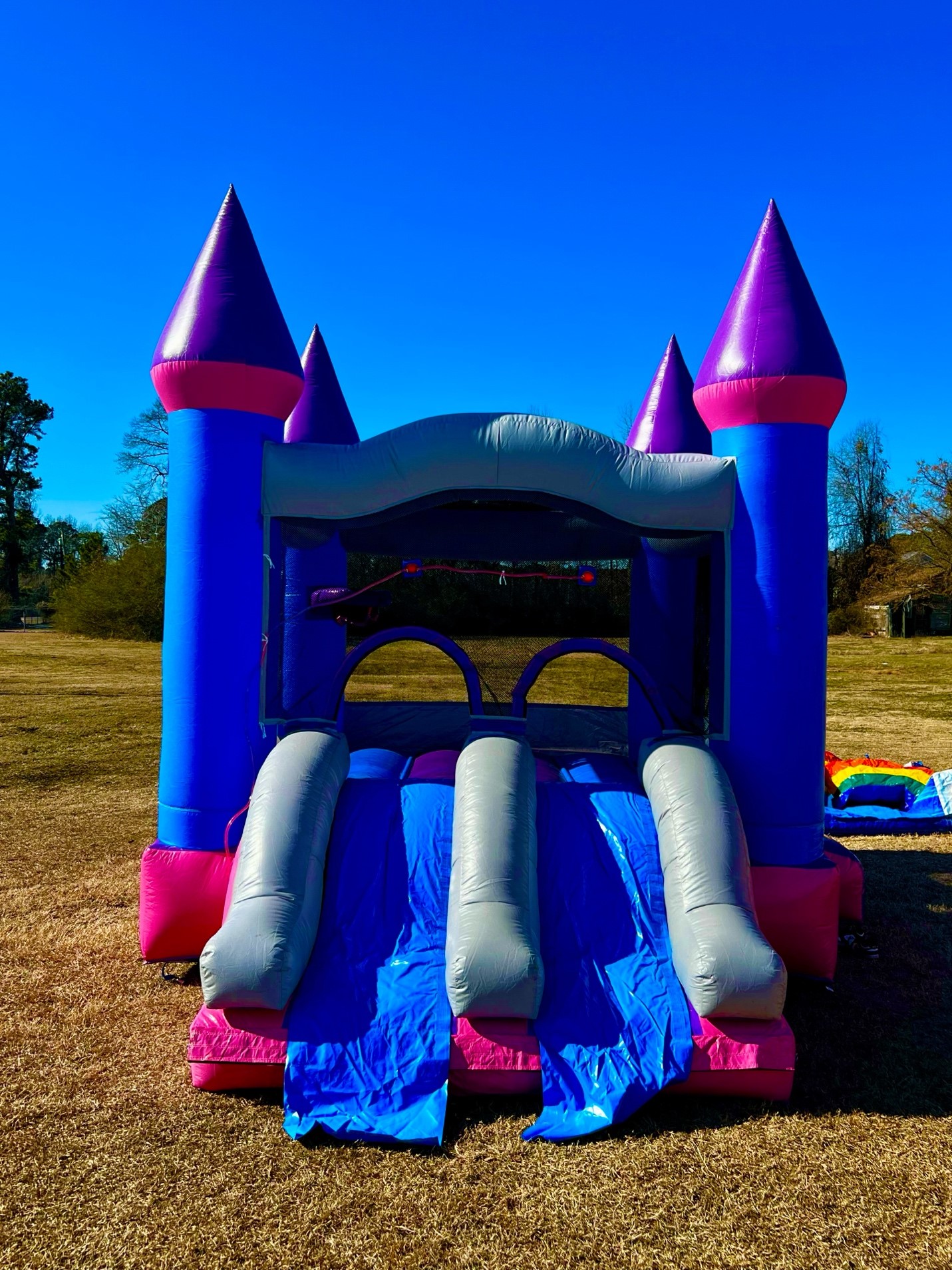 Pink Castle Dual Lane Slide/Bounce House (wet/dry)